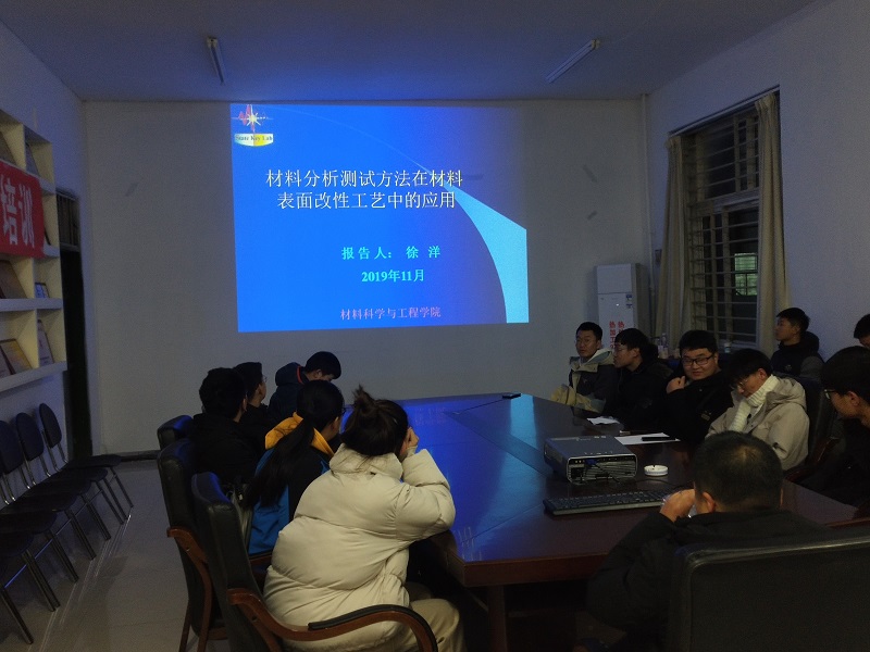 11月20日,bevictor伟德官方网站组织开展主题为“分析测试方法在材料表面改性工艺中的应用”的科研训练活动。本次科研训练由bevictor伟德官方网站徐洋老师主讲。16级、17级、18级共30名同学参加了本次科研训练。